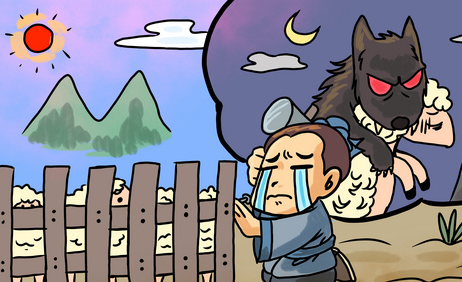第二天早晨,他打开羊圈,发现又少了一只羊。原来,夜晚,狼油从窟窿里钻了进去,叼走了一只羊。他很后悔没有听从邻居的劝告。于是,现在他赶紧把窟窿补上,把羊圈修理得结结实实的,从此他的羊圈再也没有丢过。