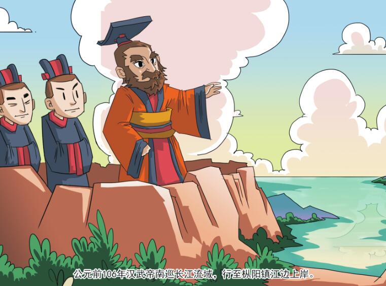 公元前106年冬天,汉武帝南巡狩猎来到长江流域,在枞阳留下一段传奇。据说当时汉武帝率领文武百官在枞阳镇江边上岸,突然发现西南方江面有蛟龙作乱,掀起狂风恶浪,汉武帝亲自挽弓射蛟,在枞阳演绎了一场灭蛟平患、为民除害的千古盛举。他还即兴创作了一首诗,叫《盛唐枞阳之歌》。《汉书·武帝纪》曾有记载:五年冬,行南巡狩,至于盛唐,望祀虞舜于九嶷。登潜天柱山,自寻阳浮江,亲射蛟江中,获之。舳舻千里,薄枞阳而出,作《盛唐枞阳之歌》。现在枞阳县城老城区的达观山南麓有一个射蛟台,相传就是当年汉武帝射蛟的地方,射蛟台下面至今还有一条老街叫蛟台里。而枞阳设县,也就是从汉武帝到枞阳这一年开始的。