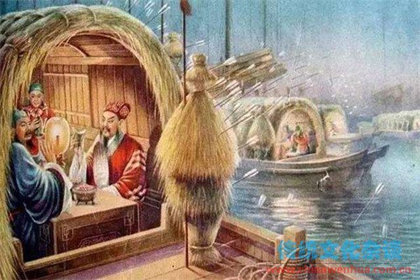在孙刘两家联合对付曹操时,周瑜嫉妒诸葛亮的才华,故意给他出难题,要他在十天之内造出十万支箭。诸葛亮答应三天之内完成任务,并立下军令状,如果完不成甘愿接受惩罚。