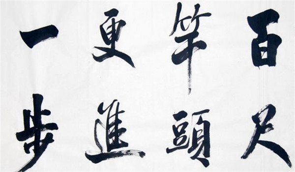 百尺竿头,更进一步。意指学问、成绩等达到很高程度后继续努力,争取更大进步 。比喻学问、成就等达到了很高程度以后仍继续努力。百尺竿头:百尺高的竿子,佛教比喻道行修养的极高境界。也称作“百丈竿头”。