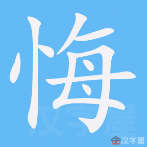 《悔》字的笔顺分步演示(一笔一画写汉字)